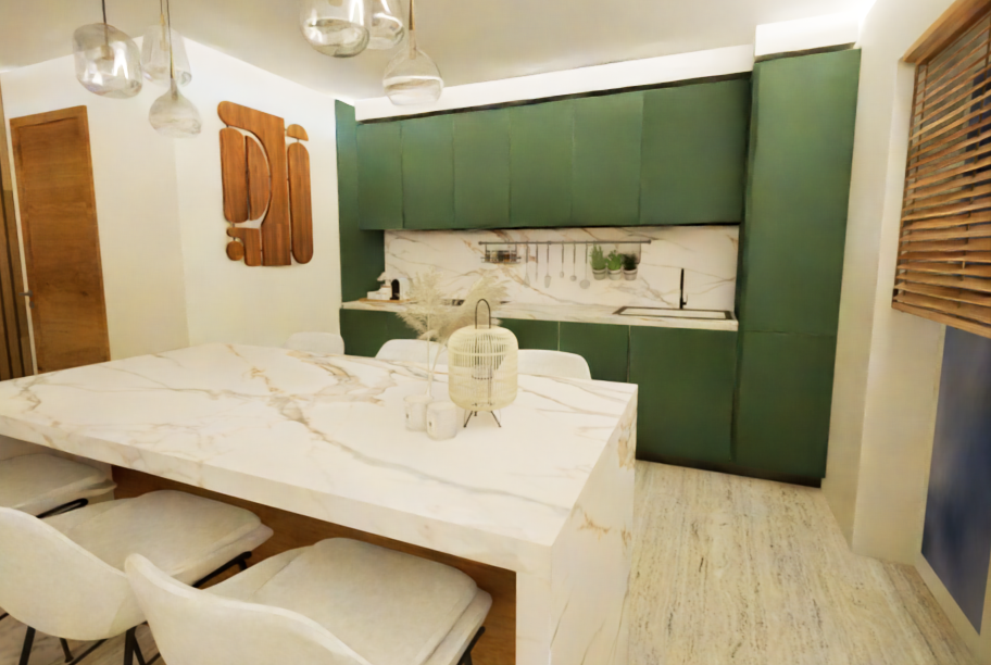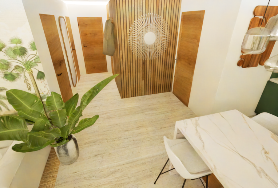 La Cride se encuentra en la segunda planta. Este apartamento respira aire fresco, con tonos verdes, tapices evocadores y colores cuidadosamente seleccionados para momentos de tranquilidad y serenidad.